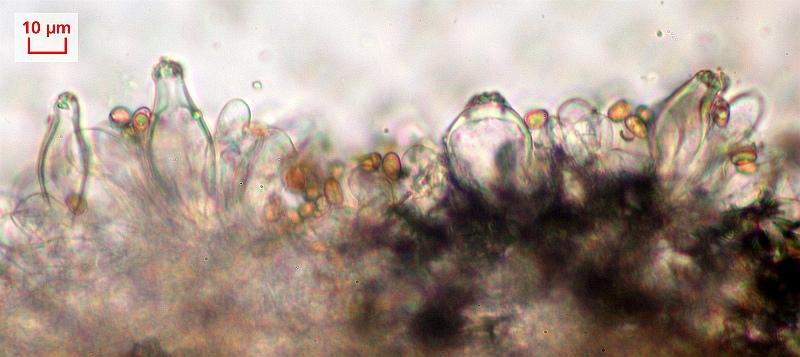 Bauchig-spindelige Zystiden, sogar im Doppelpack, ...