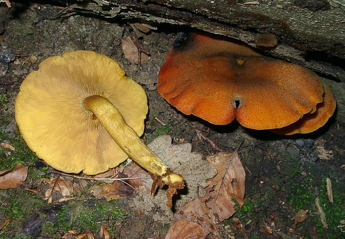 Hallo Ich habe hier eine kleine Unvertraeglichkeit: der Gute wuchs auf Laubholz in 300m Hoehe. Sieht wie ein etwas mehr leuchtender, grosser Decora (8-10cm) aus. Sowohl makro-als auch mikroskopisch ist Rutilans auszuschliessen. Die Lamellen waren etwas leuchtender, der Hut war zuhause etwas weniger orange, eher ocker, mit den typischen Decora-Schueppchen. Wenn ich mich recht an Andreas' Raetsel erinnere, war da doch auch so was (Andreas, das Bild ist weg! Ich wollte es mir nochmal anschauen, anber da ist jetzt was anderes im Link.).