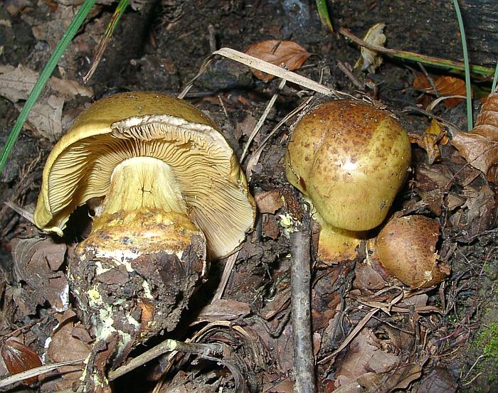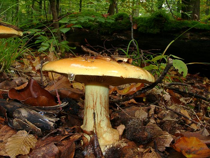 wo im Sommer Satansroehrlinge wuchsen (nach Moser bin ich bei Prasinus rausgekommen, der aber zu klein sein soll und zudem etwas blau haben soll, der Schluessel nach Courtecuisse&Duhem fuehrte direkt zu einem 'prasinus', der passen wuerde.