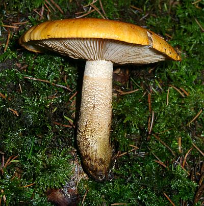 Orangeroter Ritterling (Tricholoma aurantium) Photo: Georg |  Junge Schweinsohren (Gomphus clavatus) Photo: Georg |