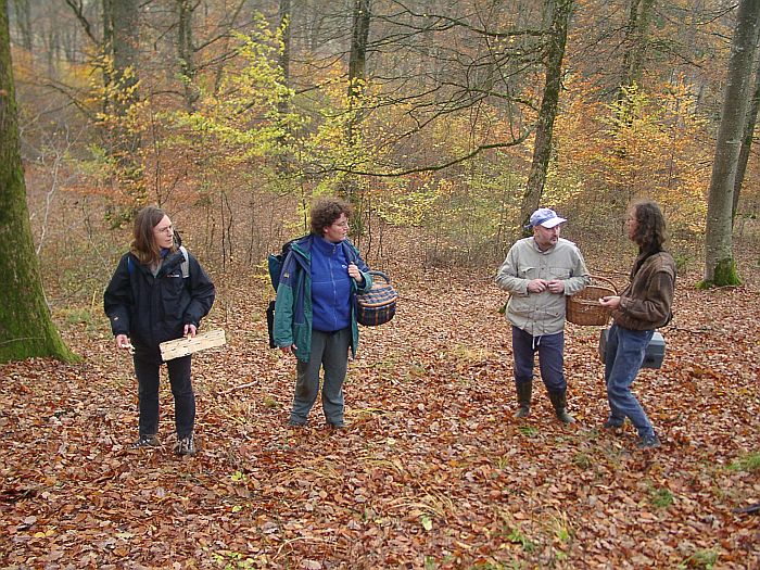 Andreas erklärt... Von links nach rechts: Aurelia, Birgit, Stinkmorcheling, Andreas. Photo: Georg