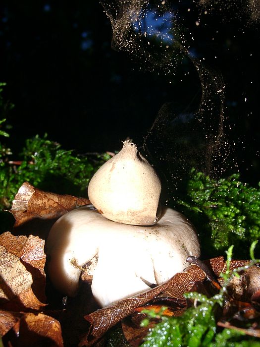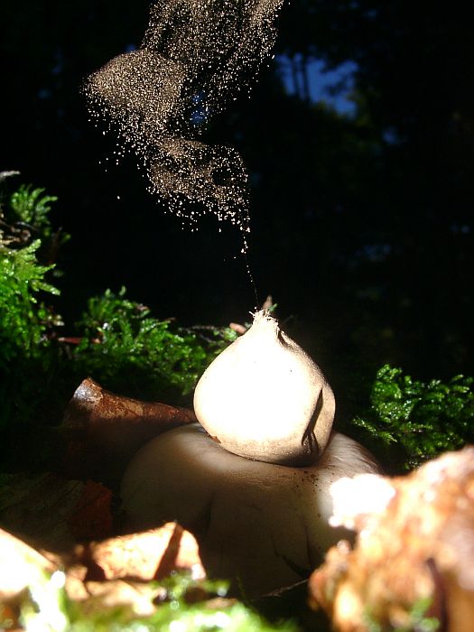 Hier zwei meiner Versuche das Austreten der Sporenwolke nach Berührung