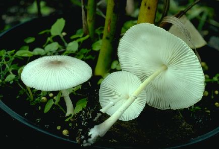 das zweite zeigt Pilze in einem Blumentopf in Hawaii: