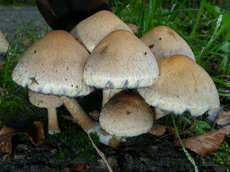 Dunkelrandiger Düngerling. Massenhaft auf altem Pferdemist abgeladen auf einer