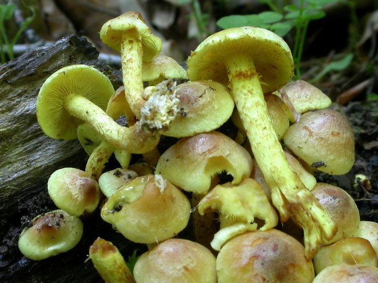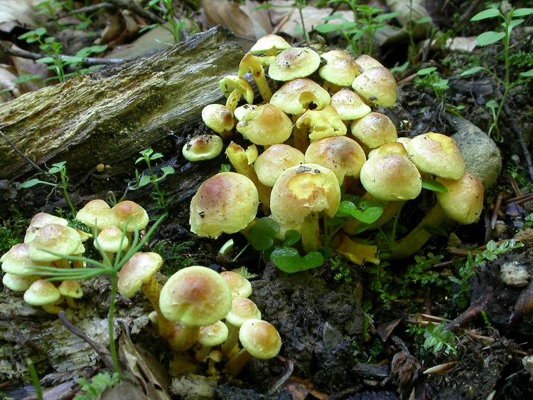 Ein wenig gewundert habe ich mich über diese Grünblättrigen Schwefelköpfe: sehr klein, Stiele sehr rostfleckig und mit "gackerlgelben" Lamellen. Etwas ungewöhnlich, oder nicht?!