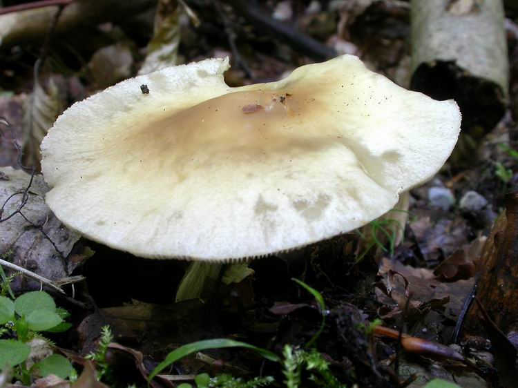 Infos: Hutdurchmesser 3-5 cm; Hutfarbe: hell graubraun, alt stärker bräunend; Sporenpulver: weiß; Standort: im Mischwald am Wegrand bei Buchen.