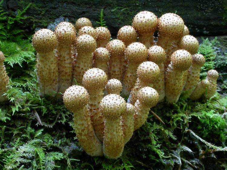 ... entdeckte ich auf einem liegenden Buchenstamm in der Nachbarschaft von Stockschwämmchen und Grünen Schwefelköpfen.
