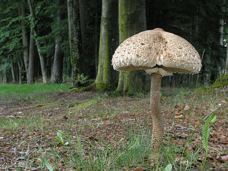 Leucoagaricus americanus (=bresadolae) an Wegrand in einem Lotharkahlwurf
