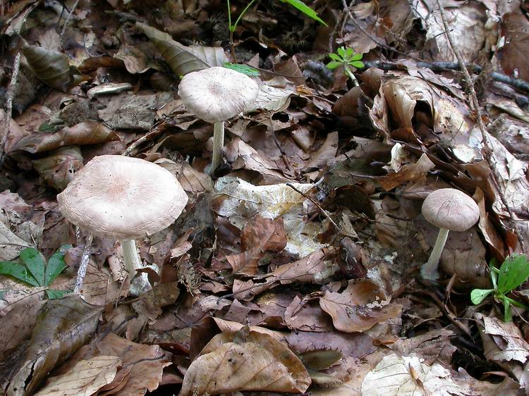 Es dürfte sich um den Ranzigen Trichterling (Clitocybe phaeophtalma) handeln, denn unter dem Mikroskop sind die Physaliden (Anschwellungen) in der Huthaut gut zu sehen, die im "Gerhardt" beschrieben sind. Ziemlich einprägsam auch der sehr bittere Geschmack. Die folgenden vier Fotos dürften den Brennenden Rübling (Gymnopus/Collybia peronata) zeigen, der massenhaft und gesellig aber nie büschelig in der Buchenlaubstreu wächst: Bild 3-6
