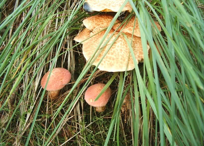 Heute gabs einiges für die Bratpfanne, einige Pfefferröhrlinge, Anischampis, jede Menge Maronen, zwei Birkis, verschiedene Täublinge, Perlpilze, zwei Flockis(einer Hutdurchmesser 22cm), Goldröhrlinge, Steinis, und eine Sorte von Röhlingen, die ich öfters finde, Hohlfuss ???? Da :