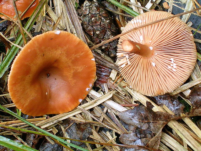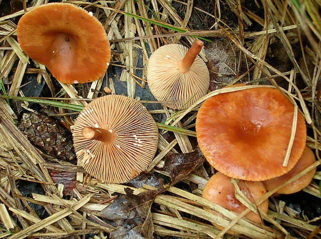 ... ich muss zu meiner Schande gestehen, mich noch nie mit den Rot- orange- braunen Milchlingen auseinandergesetzt zu haben. Hab aber heute die unten abgebildeten zu hunderten gefunden. Standort: die Verlandungszone eines Waldweihers (wahrscheinlich anmoorig?) im Wald der an den Singener Waldfriedhof angrenzt. Ca. hundertjährige Kiefern und 25 jährige Eichen waren in der Nähe. Sicher ne "Allerweltsart": Geschmack mild, Geruch vielleicht etwas ranzig, schwierig zu beschreiben. Wie heißen die: