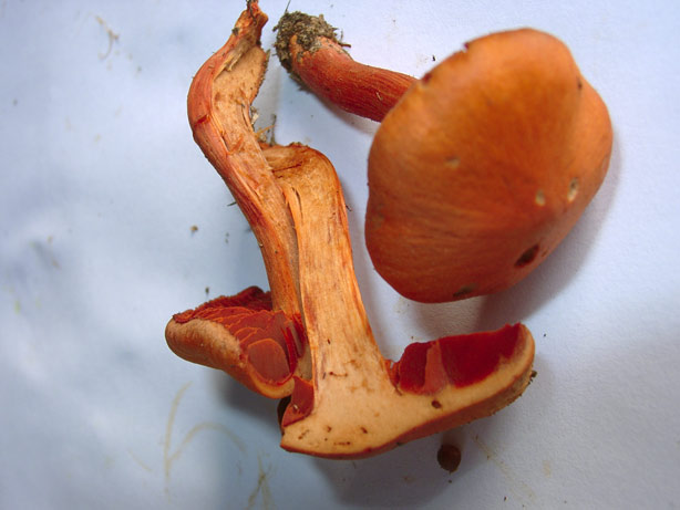 Du kannst gerne einen haben, lieber den durchgeschnittenen oder den ganzen? Allerdings bräuchte ich deine Adresse, und wie verschickt man sowas, damit bei dir nicht nur Brösel ankommen? Also, ich tendiere (mit meinem geringen Wissen) doch eher zu cinnabarinus. Bedenke auch, das ich ihn gestern tagsüber gefunden habe, es hatte den ganzen Tag vorher durchgehend geregnet und war ziemlich feucht im Wald, vieleicht sieht er ja deswegen nicht hygrophan aus. Grüße