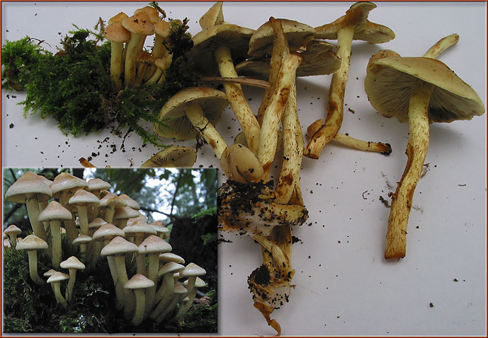 grünblättrigen Schwefelkopf. Lamelen ziemlich grünlich-gelblich, Stiel leicht