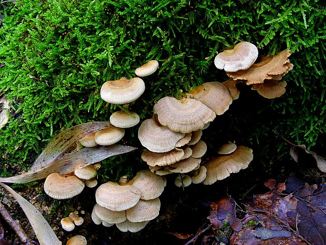 Gestern nun, ganz ohne Rudi (und ganz ohne Regen) am Abend noch eine schnelle Runde am Blutsee mit diesen Pilzen (bei falschen Zuordnungen bitte ich um lebhaften Widerspruch und Verbesserung): Panellus stypticus Herber/Bitterer Zwergknäueling