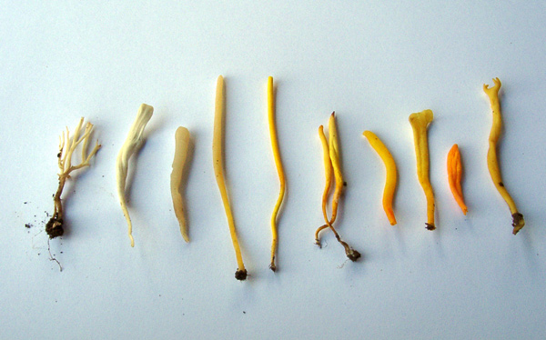 Hallo, im Moment wächst eine sehr große Vielfalt an Korallen und Keulenpilzen auf meiner Wiese. Ich komme auf 10 Arten, dazu noch 3-4 Arten Saftlinge und zei verschiedene Erdzungen. Und es kommt immer noch was neues. Ich habe mal von allen ein Stück entnommen..