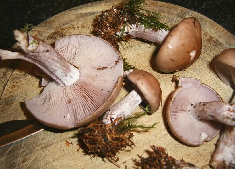 Bei dem nächsten sollte es sich sicher um den Violetten Rötel Ritterling (Lepista nuda) handeln, welchen ich zum ersten mal (nur die jungen Hüte) dem Pilzgericht beifügte. Ausgezeichneter Geschmack !