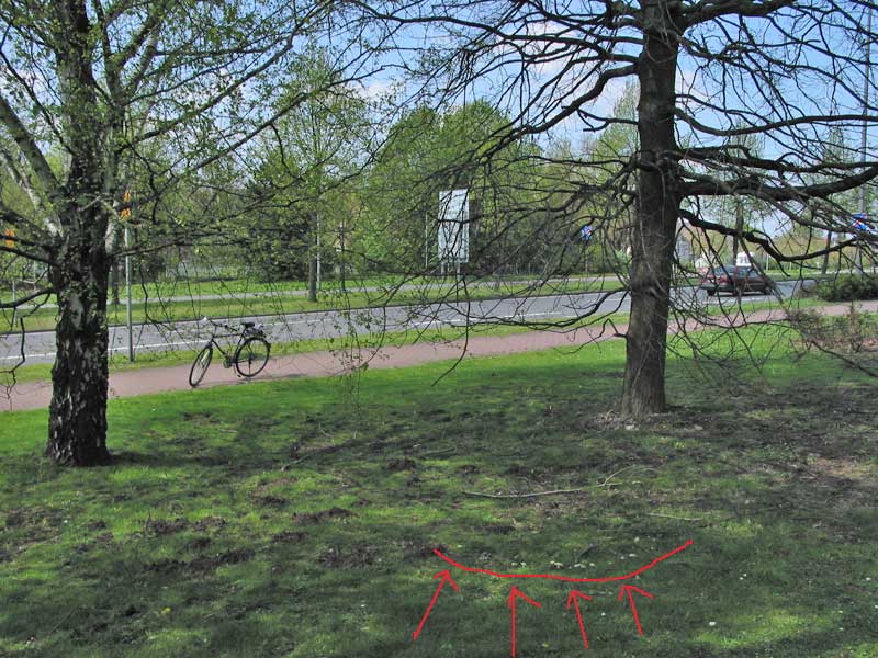 Nun 300 Meter weiter auf dem Rasen unter Laubbäumen: ein dem Maipilz ähnlicher Pilz, jedoch nicht mehr in einem Hexenring sondern einzeln stehend (aber in einer sehr großen Menge, mehrere Dutzend, vielleicht um die 100 Exemplare) und teilweise büschelig, der Geschmack etwas bitter, Sporenabdruck sehr dunkel (dunkel rost-braun), Stiel viel dünner und etwas zäher, die jungen Fruchtkörper mit sehr kompaktem Velum (auf dem Foto zu sehen). Auf dieser Stelle habe ich auch letztes Jahr (damals ein wenig später, am 5-ten Mai) die gleichen Pilze gefunden. Auf der gleichen Stelle kamen dann im Oktober in großer Menge die Faltentintlinge.