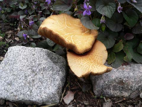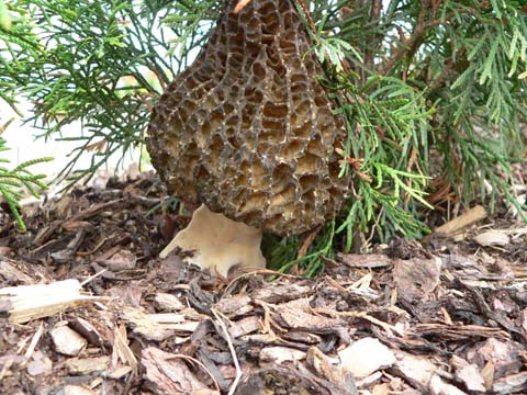 Die Hoffnung auf Morcheln noch nicht aufgegeben, ins Neubaugebiet und da habe ich dann den richtigen Garten gefunden. Die Frau des Hauses war gerade mit 2 Kindern da und erzählte mir, dass sie zum Schutz der Kinder schon einige Pilze zertreten hat. Autsch!!! Habe Sie gebeten, das nicht mehr zu tun und werde Ihr noch unsere Internetadresse bringen. Vielleicht könnt ihr aufgrund der Bilder sagen, ob die Pilze giftig sind oder nicht. ;-)