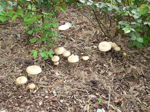 Habe heute auf dem Weg zum Einkaufen einige Pilze entdeckt und mich später auf Fotosafari durch den Ort gemacht und den Rindenmulch abgesucht.