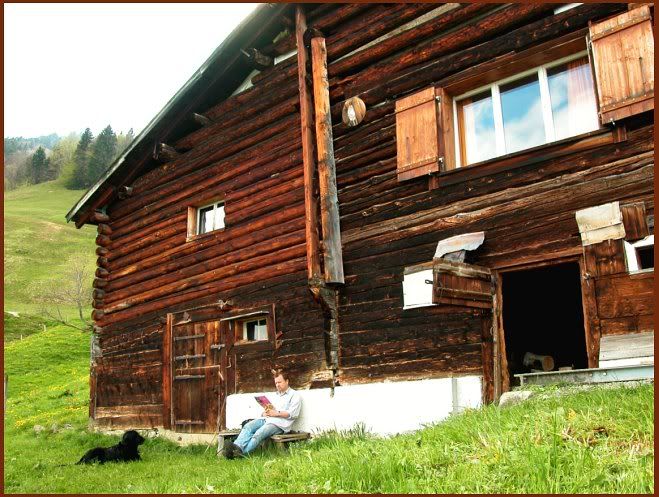 Roli ist dies Bild gewohnt, er ruht sich mit Hund Taro vor der Hütte aus: