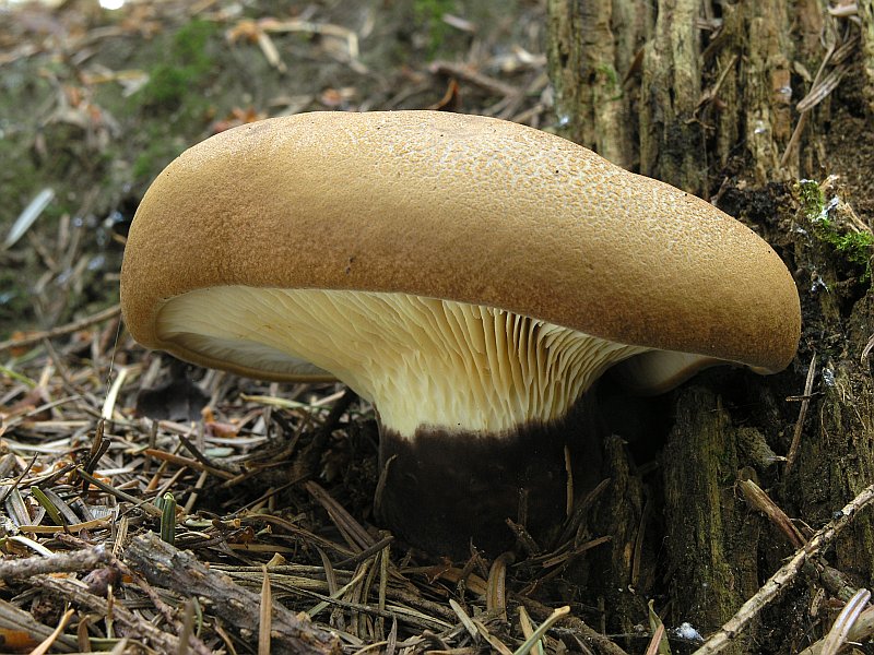 Samtfußkrempling (Tapinella atrotomentosa) auf Fichtenstumpf