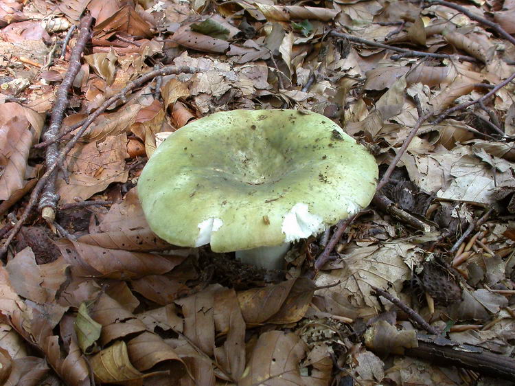 Der grüne Täubling aus dem Buchenwald kann eigentlich nur R. cyanoxantha oder heterophylla sein, ich tendiere zu ersterem. Die Huthaut war zu Hälfte abziehbar, die Lamellen auch beim reifen Pilz sehr elastisch; die beiden abgebildeten Fruchtkörper standen nah beisammen.