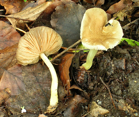 Die hier sehen exakt aus wie kastanienbraune Schwarzfußporlinge (P. badius), wie ich sie letzes Jahr mal gefunden hab, nur sind die überhaupt nicht kastanienbraun sonder äußerst blass...Eine Farbform??