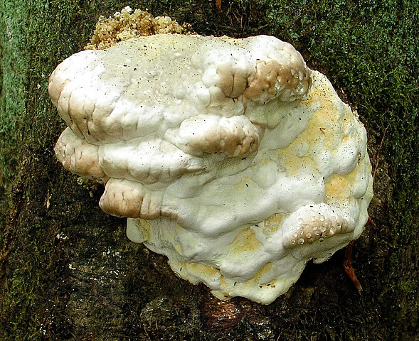 Dann schöne Porlinge an einem lebenden stehenden Buchenstamm, mit Rindenverletzung.. unten diese Exemplare: