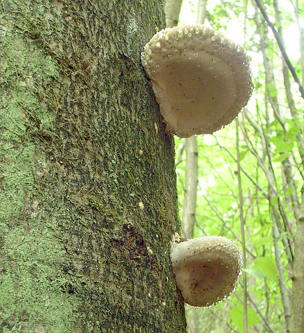 und weiter oben am Stamm wahrscheinlich dieselbe Art tropfend wie ein Schillerporling :
