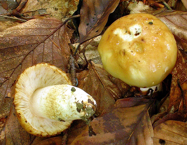 Und der ist mit ihm verwandt, ich schwanke zwichen R. grata dem Mandeltäubling und R. pectinata dem milden Kammtäubling. Geruch nicht unähnlich fotens, aber nicht so unangenehm, ist durchaus ne Mandelkomponente drin, aber nicht extrem. geschmack eher unangenehm aber nicht scharf: