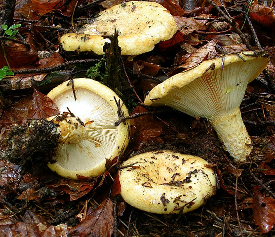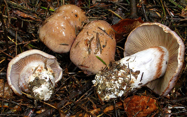 Der rosaanlaufende Milchling (L.acris) in Fichten/Tannennadelstreu (Buche in der Nähe):