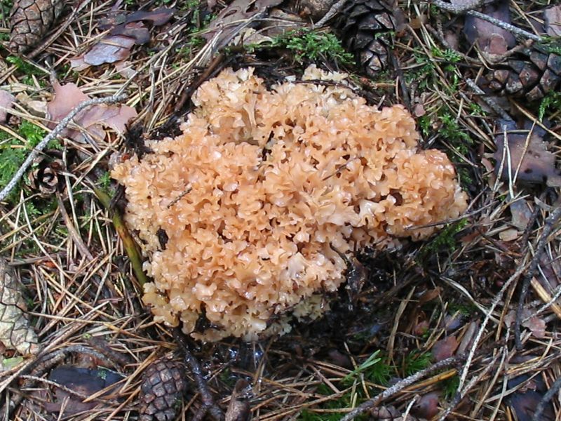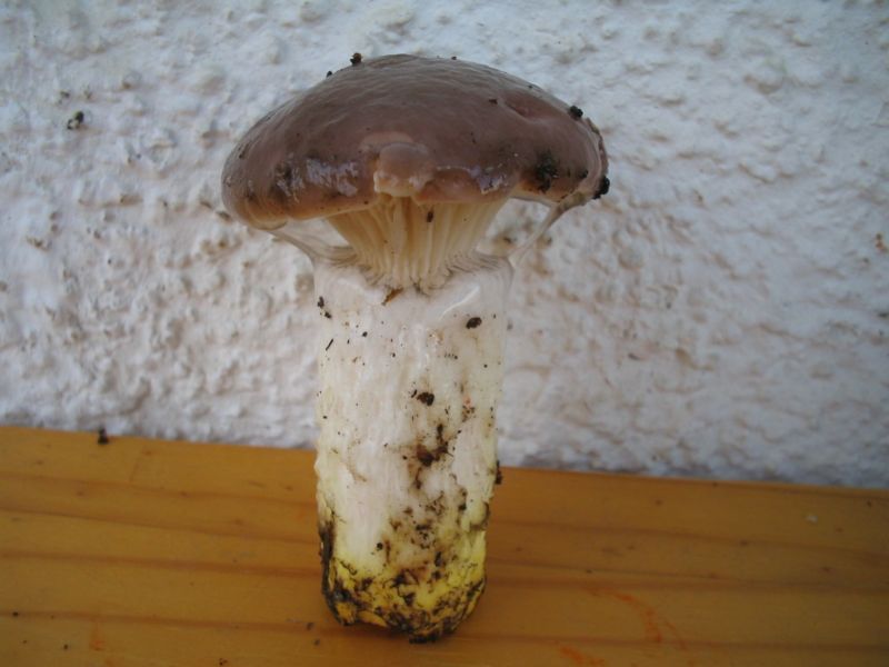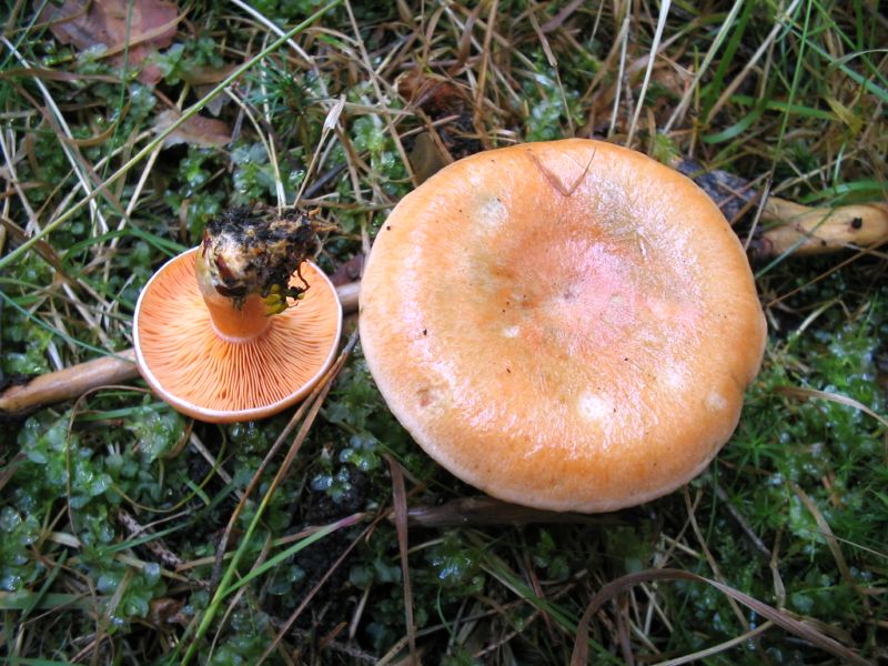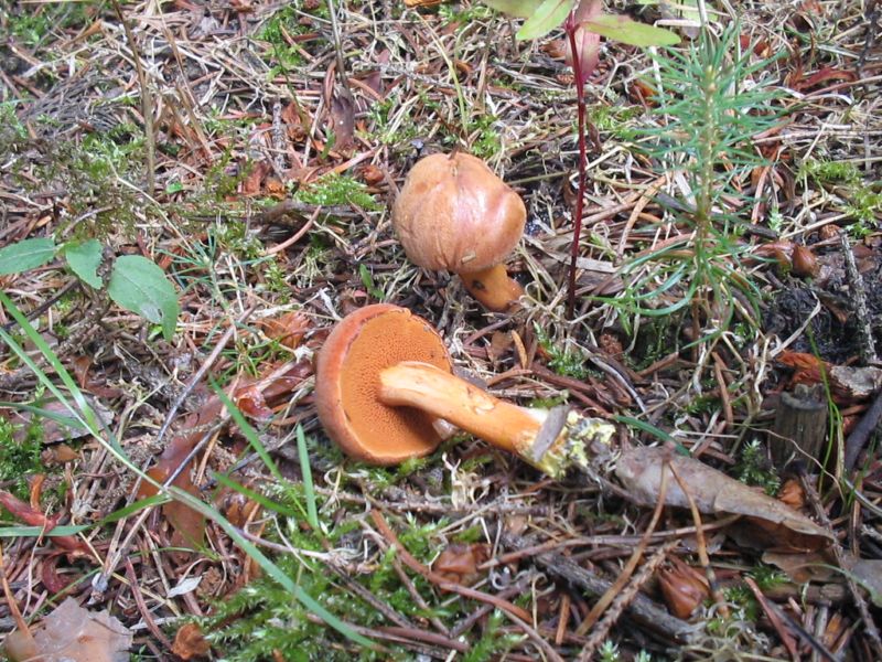 Und zum ersten mal schon im August: Gomphidius glutinosus (Kuhmaul oder Grosser Schmierling) und Krause Glucke: