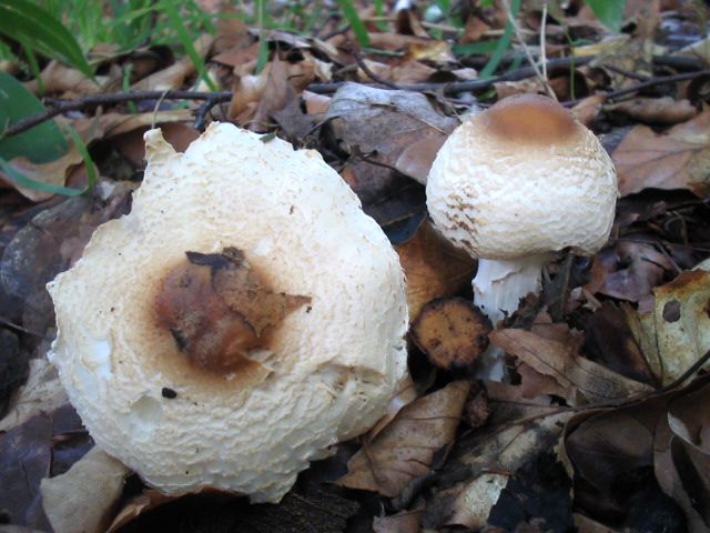 Kommen wir gleich zu den nächsten Bildern: Diesen Schirmling gibt es momentan massig im Laubwald neben Parasol und Safranschirmpilz: Ich habe ihn als Lepiota ignivolvata (Braunberingter Schirmling) bestimmt: