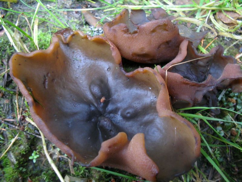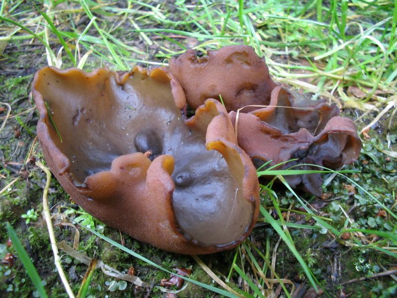 Zum ersten mal gefunden: Kastanienbrauner Becherling (Peziza badia) – mit dem typischen Oliv -Touch nach Außen hin