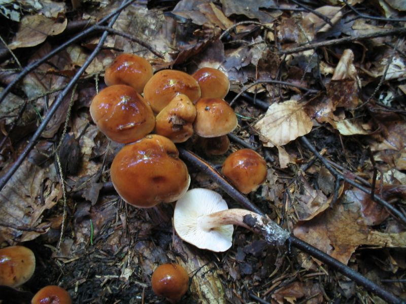 Hallo Pilzler, zu später Stunde einige weitere Fotos unter anderem mit Unbekannten. Zu erst der bei uns im Buchenwald momentan als Massenpilz auftretende Safran-Schirmpilz (Macrolepiota rachodes):