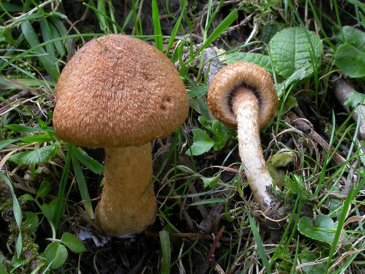 Stiel: 5-7 cm lang, zylindrisch, basal schwach verdickt und dann leicht zugespitzt, auf ockerweißlichem Grund hutfarben geschuppt, im oberen Drittel mit schwärzlicher Ringzone, darüber auf weißlichem Grund schwarz punktiert, alt hohl;