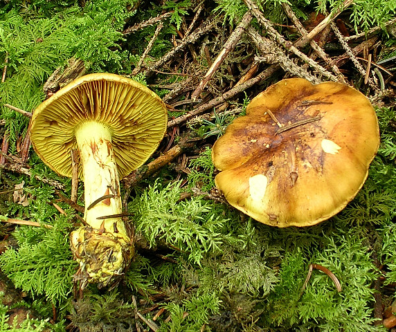 Ich mußte heute einen freund in Oberndorf abholen, und da dachte ich mir der aus Horberger Pilzkursen gut bekannte Kalknadelwald zwischen Flözlingen und Weiler liegt ja grad um die Ecke. Viel gabs nicht, vielleicht liegt ja alles in Hornberg in der Pilzlehrschau auf den Tischen :-)). Aber immerhin zwei typische Schleierlinge von dort: