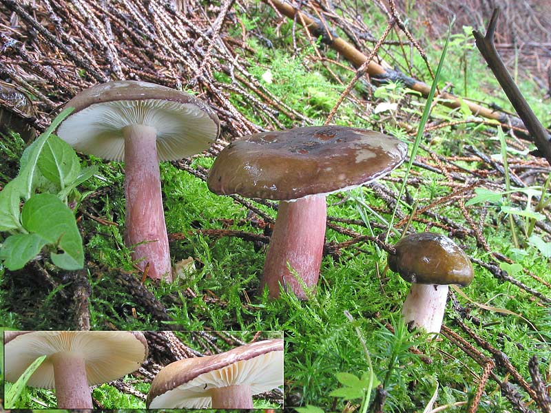 7) Risspilz? Auffallend die unterschiedliche Einfärbung bei den jungen und alten Pilzen (die alten haben rost-rot-braune Lamellenfarbe):