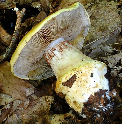 Hallo zusammen, Trotz Trockenheit hält meiner neuer Lieblingswald am Mindelsee schönes bereit: Ein stattlicher gelber Klumpfuß mit blaßvioletter Lamellenfarbe, vielleicht ist das C. cäsiocortinatus?? Werd ich morgen in Hornberg klären: