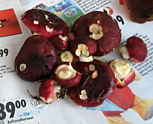 die Stiele waren alle rot überflammt, und wurden nicht grau an verletzten Stellen. (so wie bei den Graustieltäublingen)