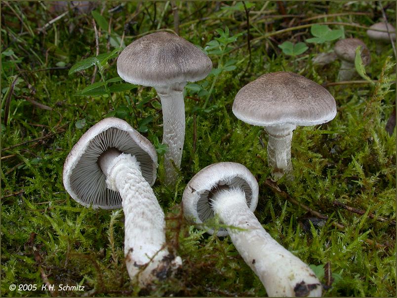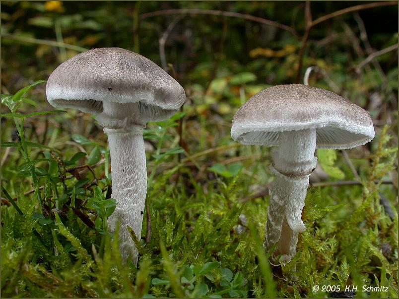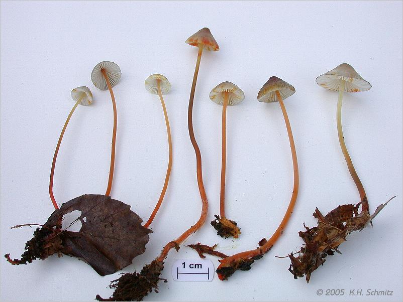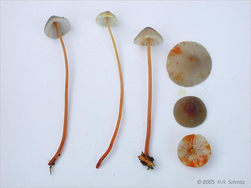 Hallo Der Beringte Erdritterling, Tricholoma cingulatum (Fr.) Jacobasch und der Gelborangemilchende Helmling, Mycena crocata (Schrad.:Fr.) Kummer.