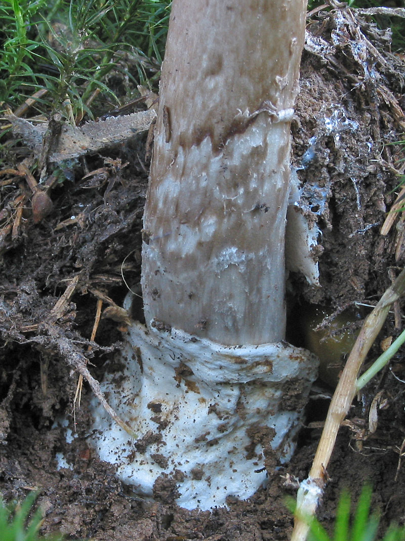 Amanita submembranacea - der Grauhäutiger Scheidenstreifling? Vielleicht doch? Hat aber keine Velumreste auf dem Hut gehabt. Hier noch einmal die Volva aus der Nähe:
