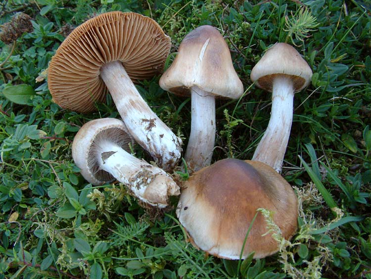 Hallo Pilzbegeisterte, Diesen Schleierling (ich tippe auf die Sektion Sericeocybe) fand ich sehr zahlreich auf einer Saftlingswiese (Magerrasen mit Wachholder). Leider habe ich weder eine genaue Diagnose gemacht, noch mikroskopiert. Hier mal ein paar Angaben: Hut: Auffallend konisch gebuckelt, bei älteren Exemplaren ist der Hut ausgebreitet und der Buckel zur Papille geworden. Mittelgroßer Pilz (Hutdurchmesser bis 80/120 mm).