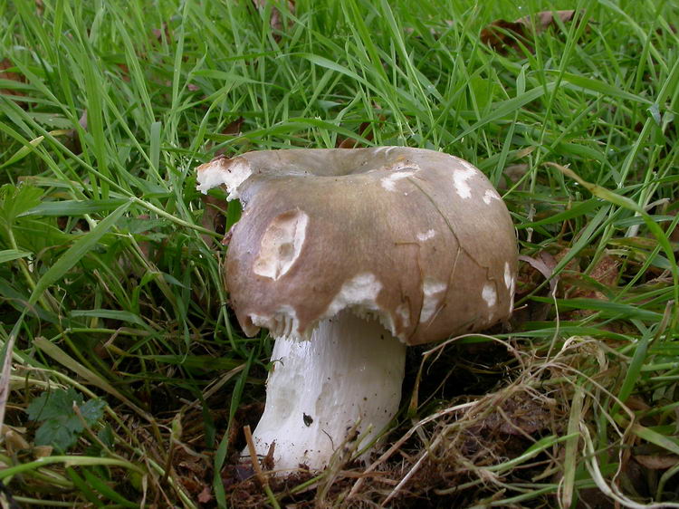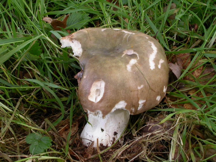 Servus, wieder mal ein Täubling zum Zähneausbeißen. Er wuchs zu zweit bei einer alten Eiche in der Wiese. R. virescens, den ich von diesem Standort kenne, scheidet wohl aus, u.a. weil die Chemie nicht stimmt. Für R. cyanoxantha sind die Lamellen zu brüchig und das cremefarbene Sporenpulver gibt dieser Anwandlung den Rest. Wer hat eine Idee, was es sein könnte?