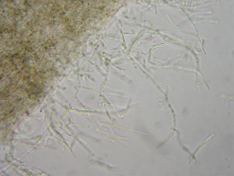 Und so sieht ein Stückchen der Huthaut in Wasser aus:
