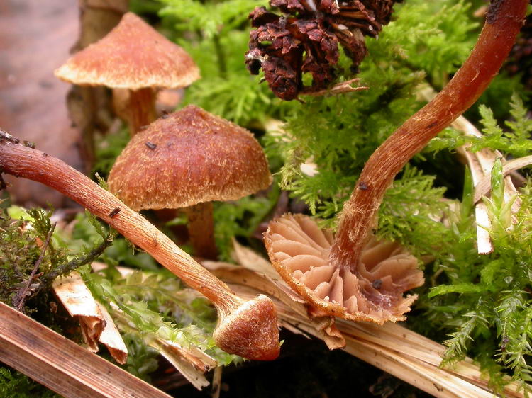 auf der Suche nach Erlenschnitzlingen habe ich mir diesen mutmaßlichen Wasserkopf "eingehandelt". Aufgrund seines Standorts in einem sumpfigen Erlenbruch und seiner dicken Lamellen wäre es praktisch, ihn als Dickblättrigen Erlen-Gürtelfuß (C. helvelloides) zu bestimmen. Vielleicht käme auch C. badiovestitus in Frage.