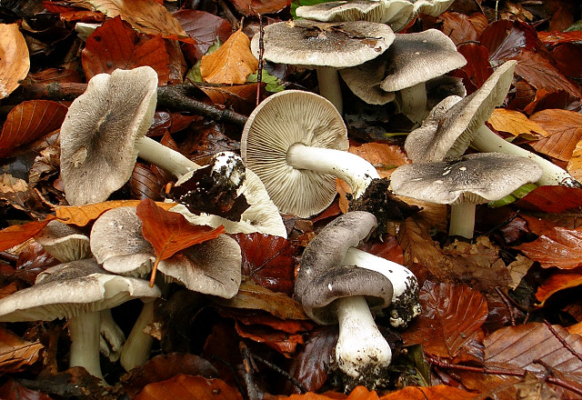 Hallo zusammen, war heute mit ufo am Mindelsee und es hat noch einiges an Pilzarten: an mehreren Stellen in großer Anzahl diese kräftigen grauen Ritterlinge bei denen ich jetzt mein zumindest einen rosa Schein im Hut zu erkennen. Die Schneiden sind schwarz punktiert. Ist das vielleicht T.orirubens??
