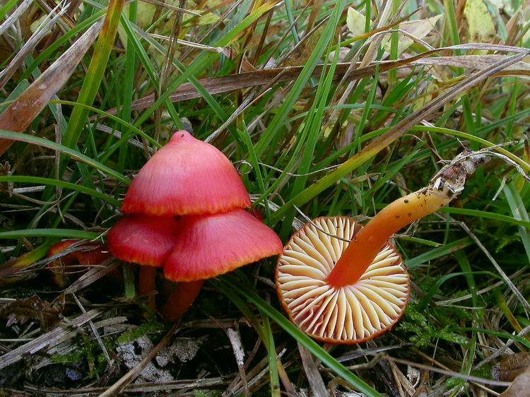 Servus, in unsrer Gegend (München Umland) haben sich die Saftlinge nochmal zu einem Schub durchgerungen. Auf einer mageren Wiese wuchsen jede Menge rote Exemplare, ich bin mir nur nicht sicher, ob alle dieselbe Art sind. Vielleicht können mir die Saftlings-Freunde ein paar Tipps geben. Hier drei Fotos zur ersten Aufsammlung mit Beschreibung: