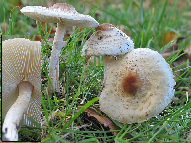 3) Und dann ein Schirmling, der sehr unangenehm stinkt, ich tippe auf Lepista cristata - Stinkschirmling. Hutdurchmesser ca. 5-6cm:
