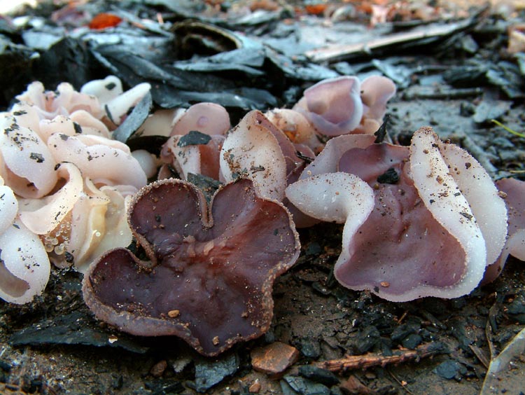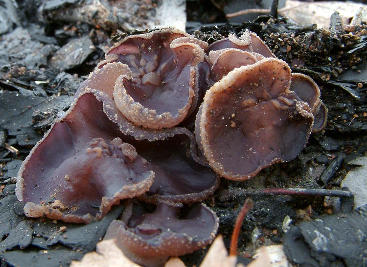 ich versuchs auch mal auf diesem Weg:-) Diesen Becherling (Peziza?) fand ich auf einer Brandstelle (wuchs auf verkohlter Erde). Bevor ich diesen Ascomycet unters Mikroskop zerre, wage ich mal hier eine schüchterne Anfrage (so wie halt nette Brünette so sind), ob den jemand auf Anhieb kennt. Grüßle